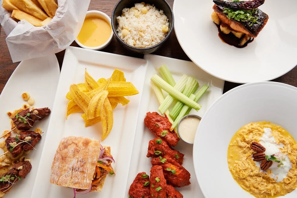 Slow Cooked Pulled Chicken, Creamy Peruvian Pepper Sauce, Yellow Peruvian Potato, Q’s Botija Olive Roasted Pecans, Choclo White Rice, Perfect Egg $26